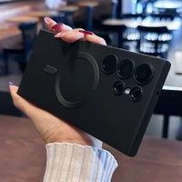 Samsung Case Luxury For Magsafe Magnetic Wireless Charge Phone Cases For Samsung Galaxy S23 S22 S21 (Lens Protector)