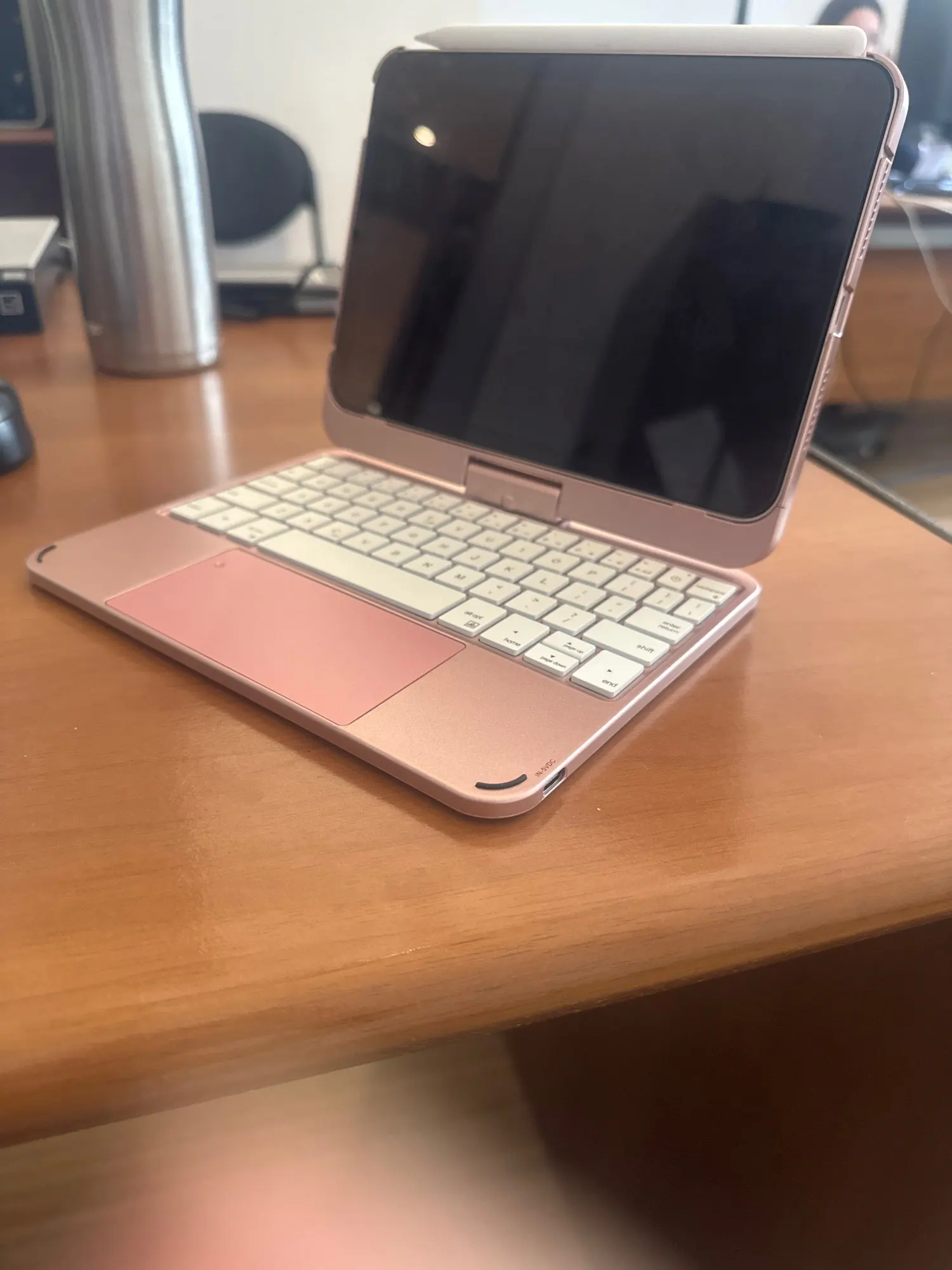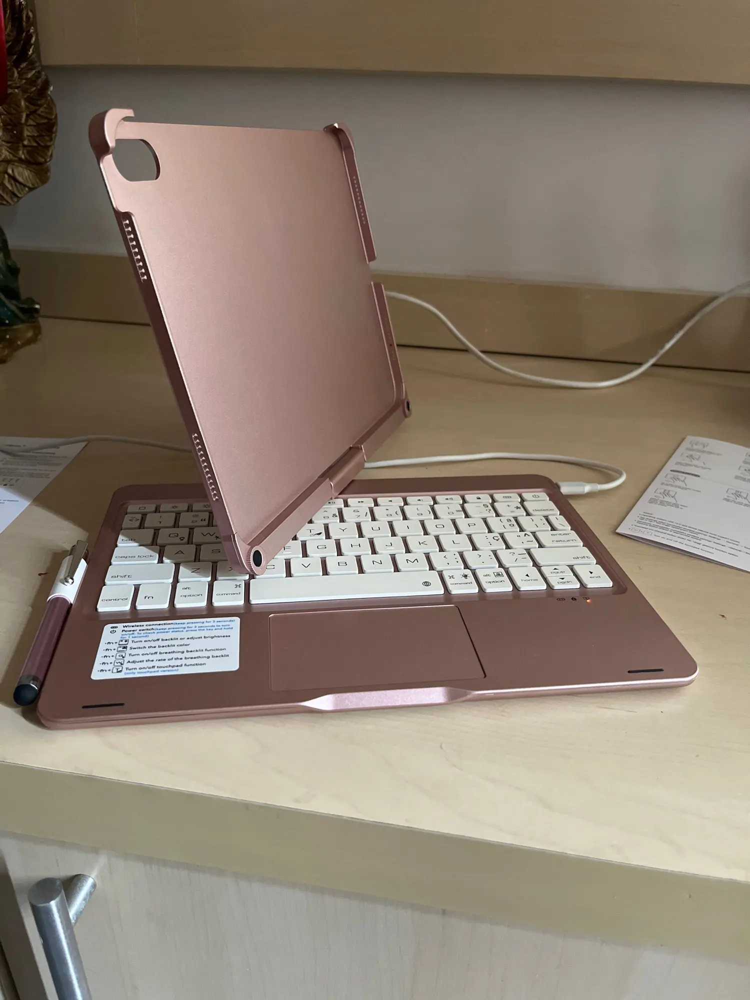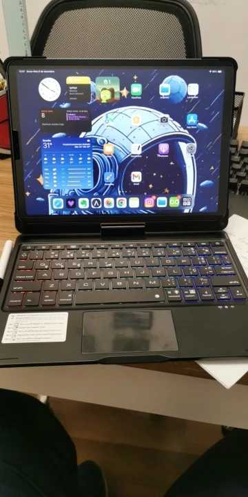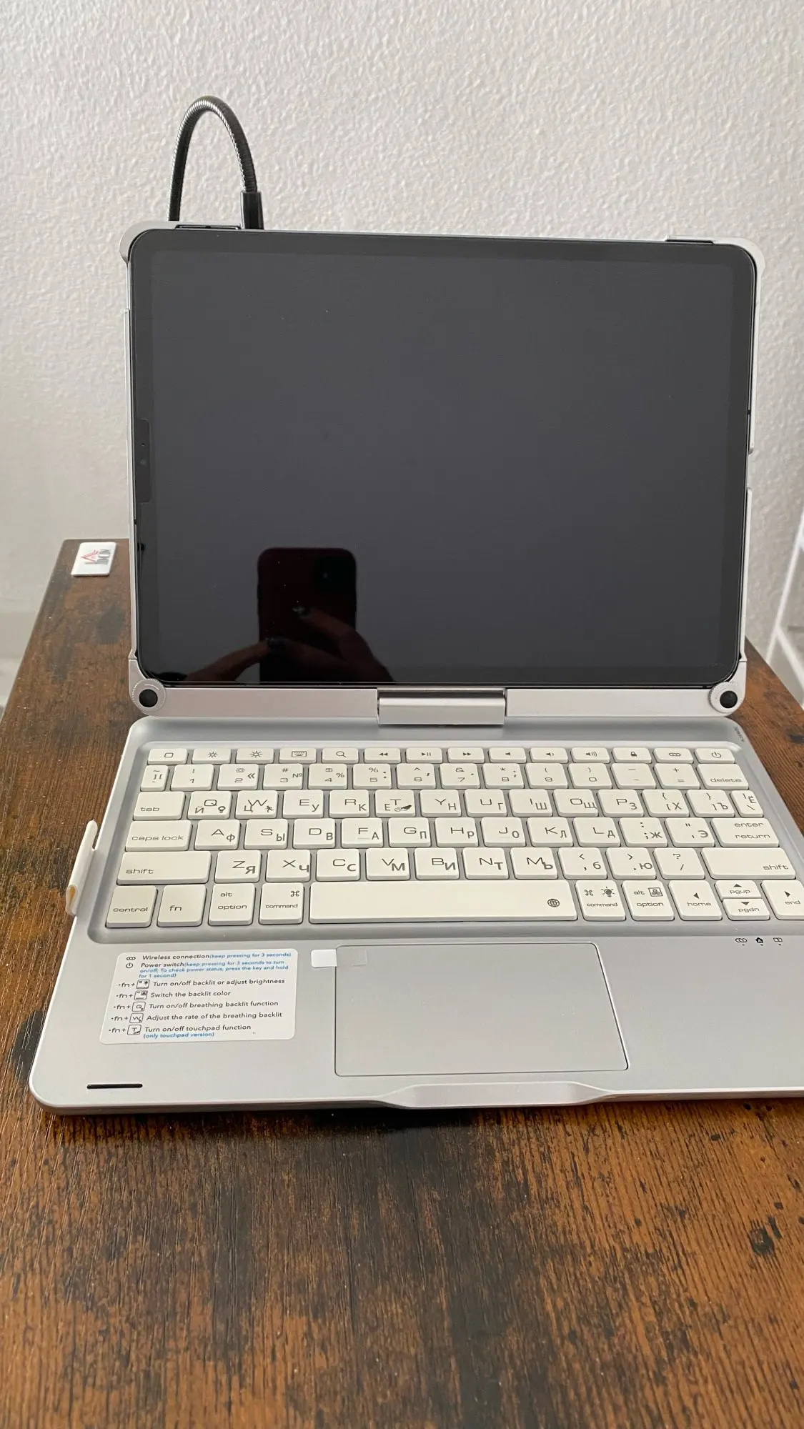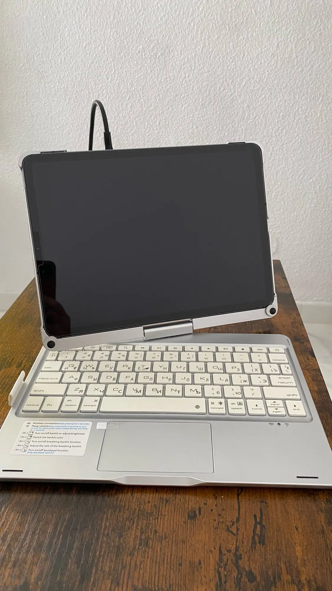 This keyboard has a unique connecting shaft design that allows you to adjust the tablet at any angle in 360 degrees horizontally and 180 degrees vertically.