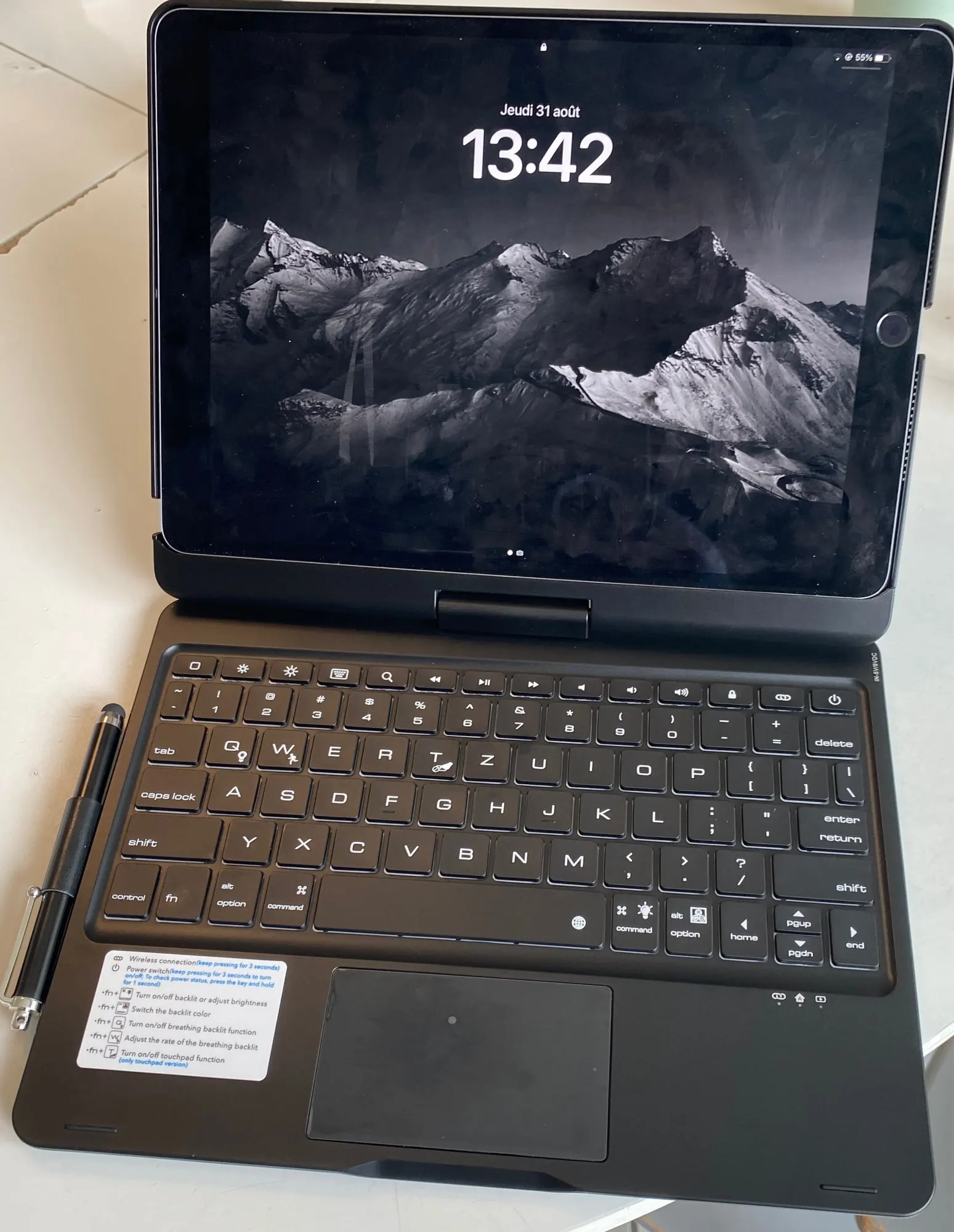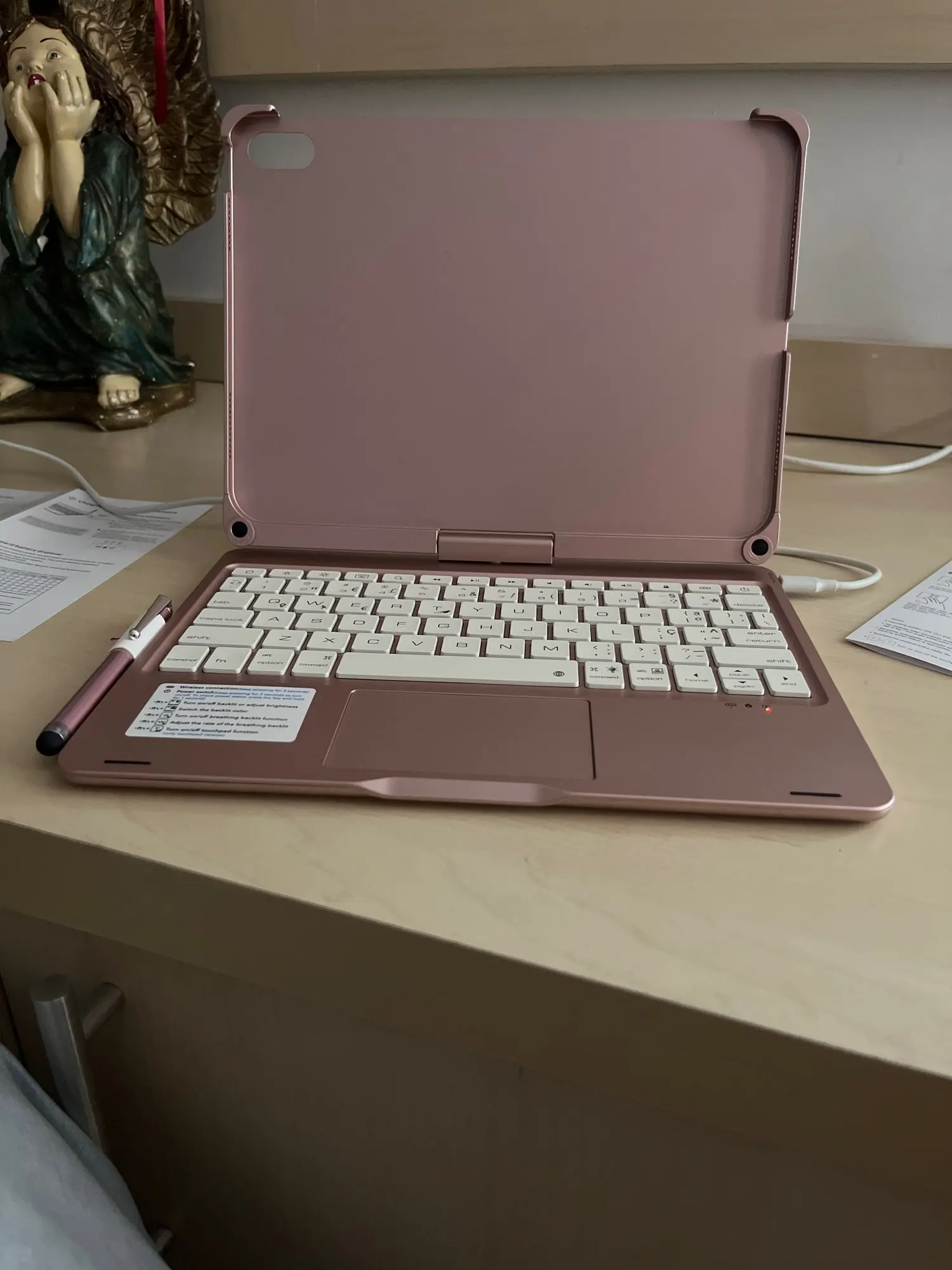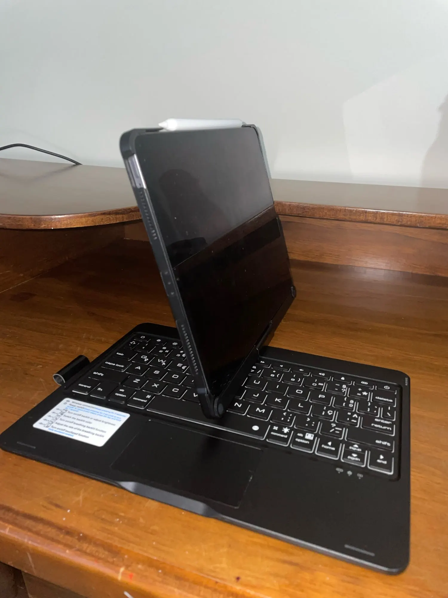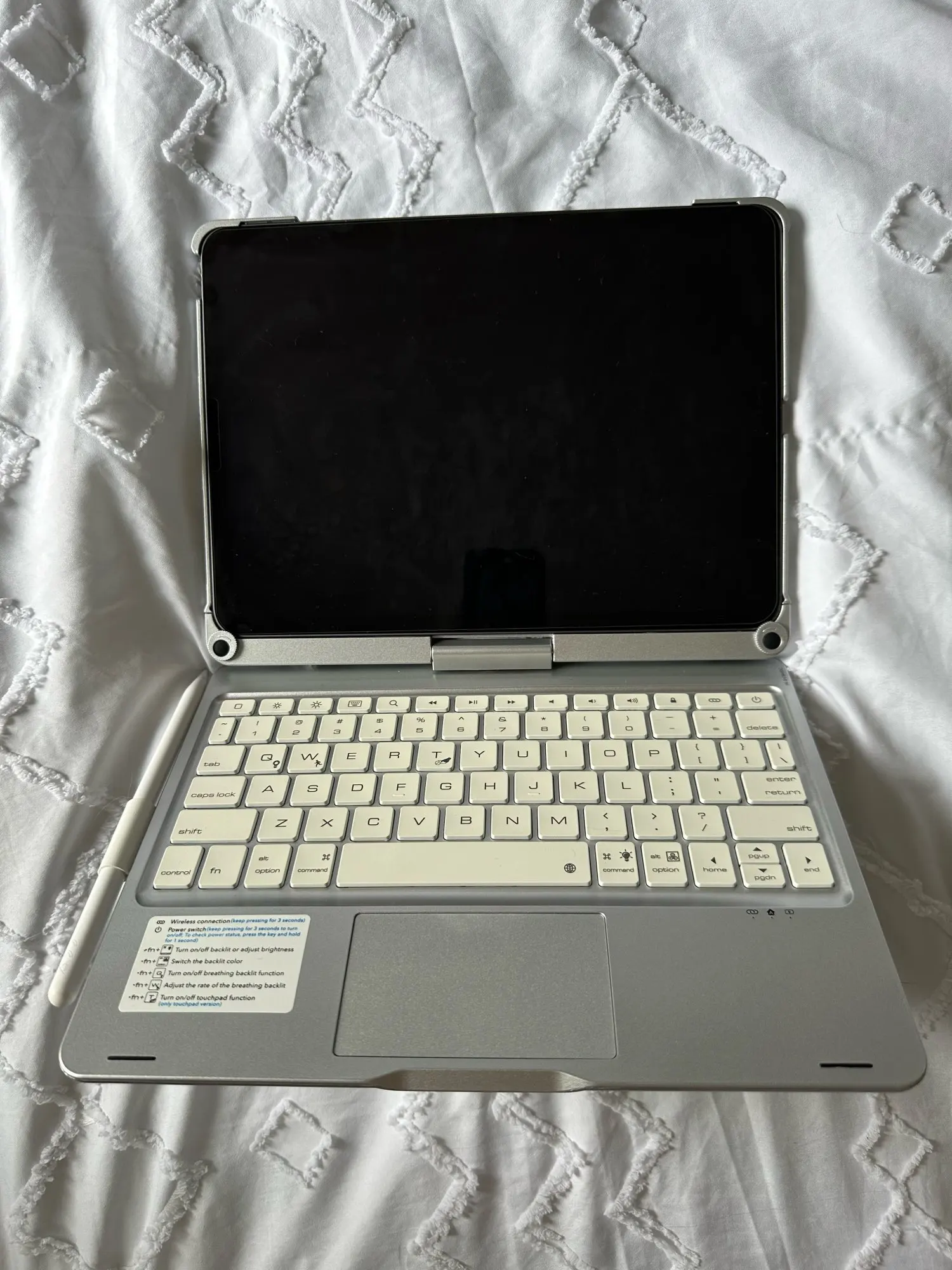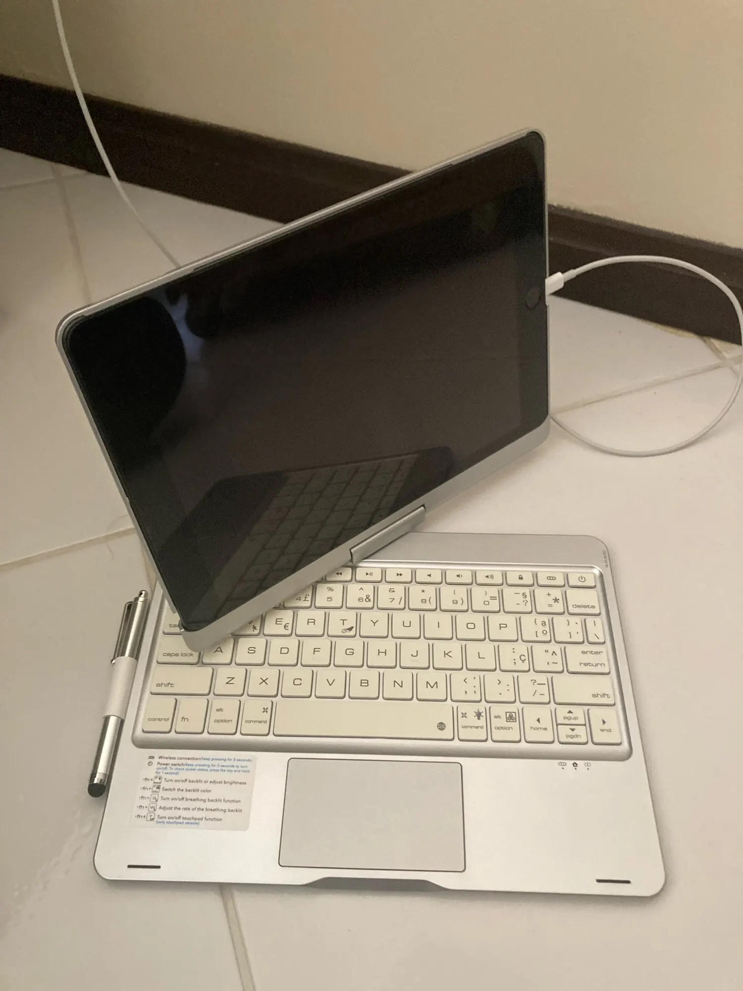 This keyboard has a unique connecting shaft design that allows you to adjust the tablet at any angle in 360 degrees horizontally and 180 degrees vertically.