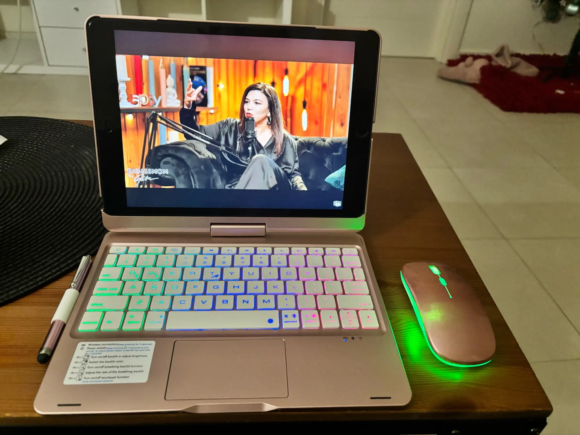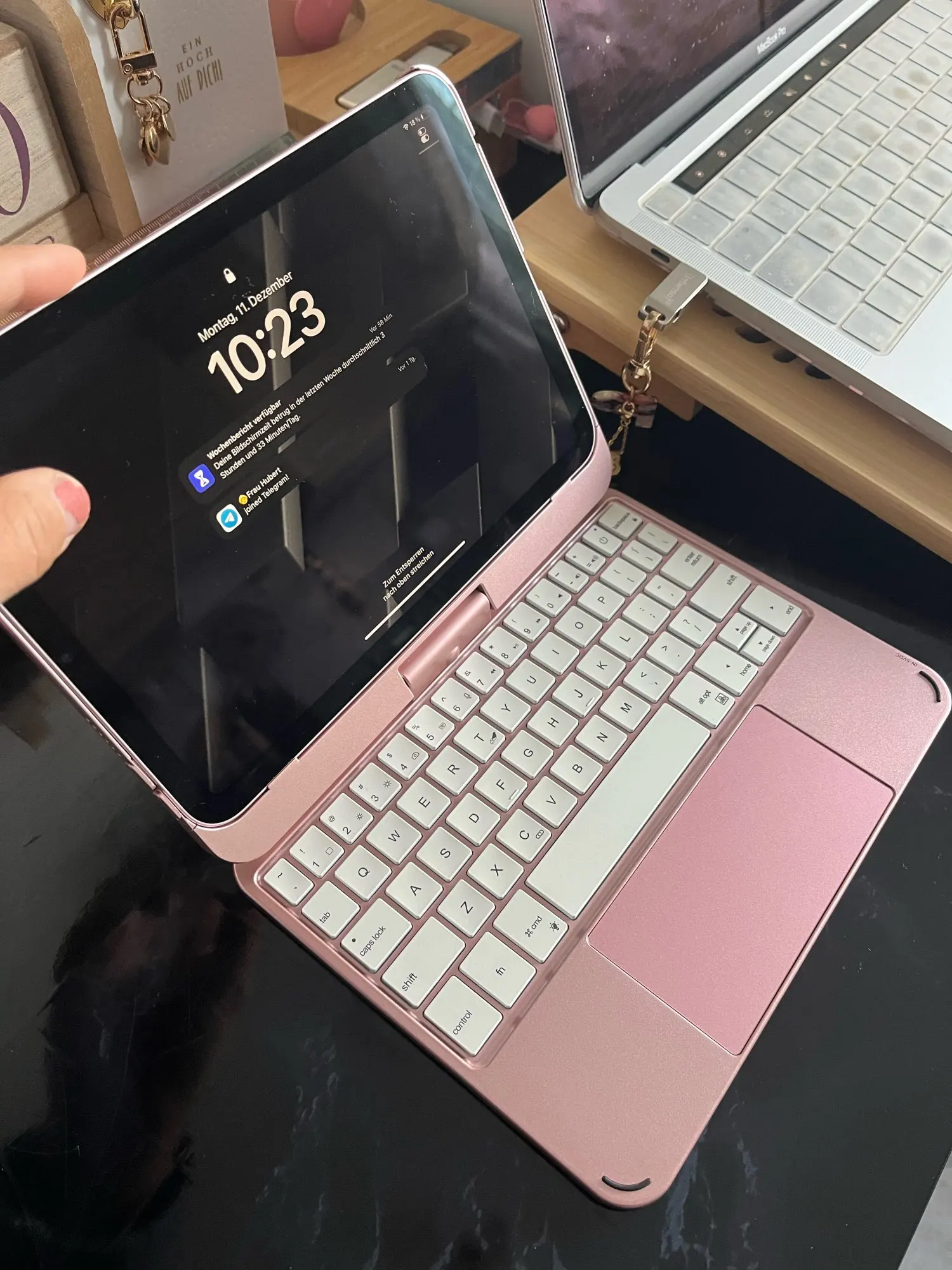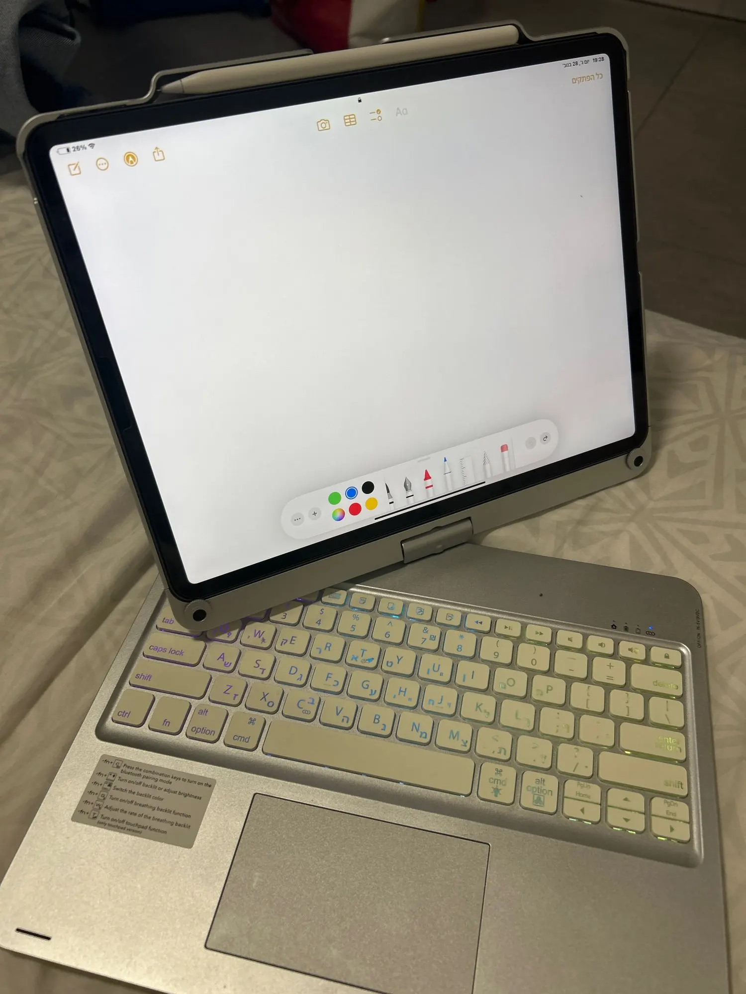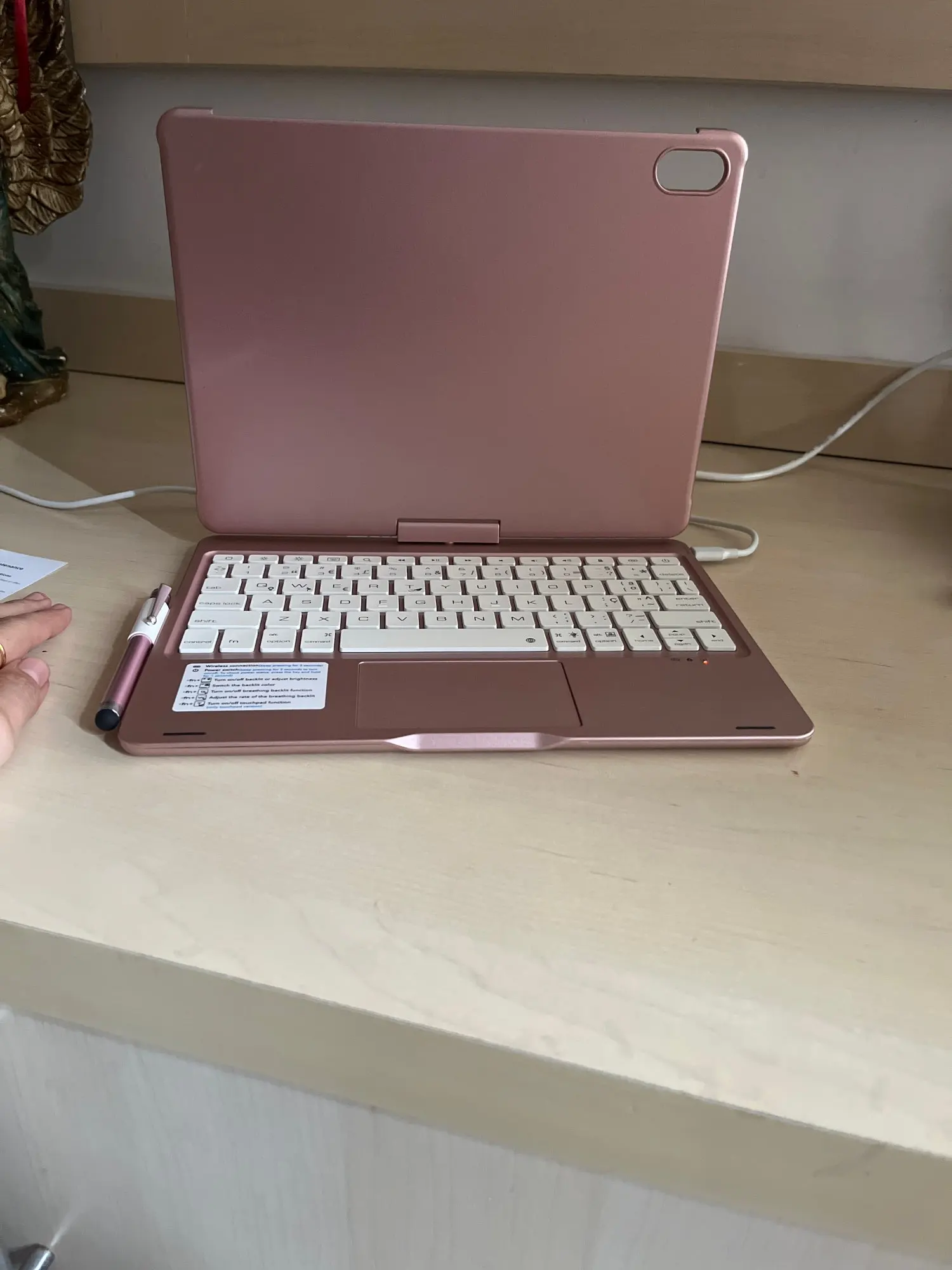 This keyboard has a unique connecting shaft design that allows you to adjust the tablet at any angle in 360 degrees horizontally and 180 degrees vertically.