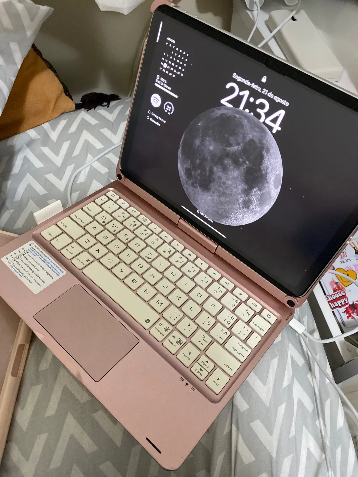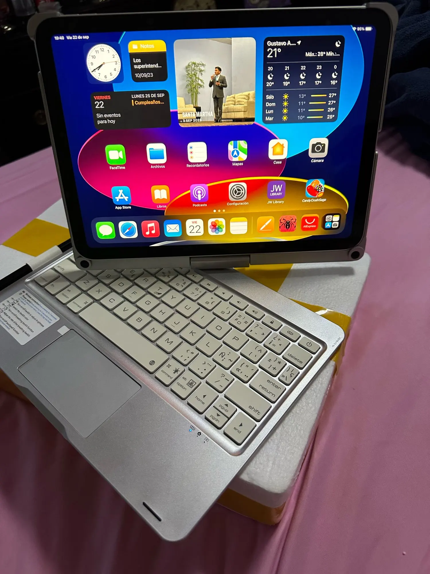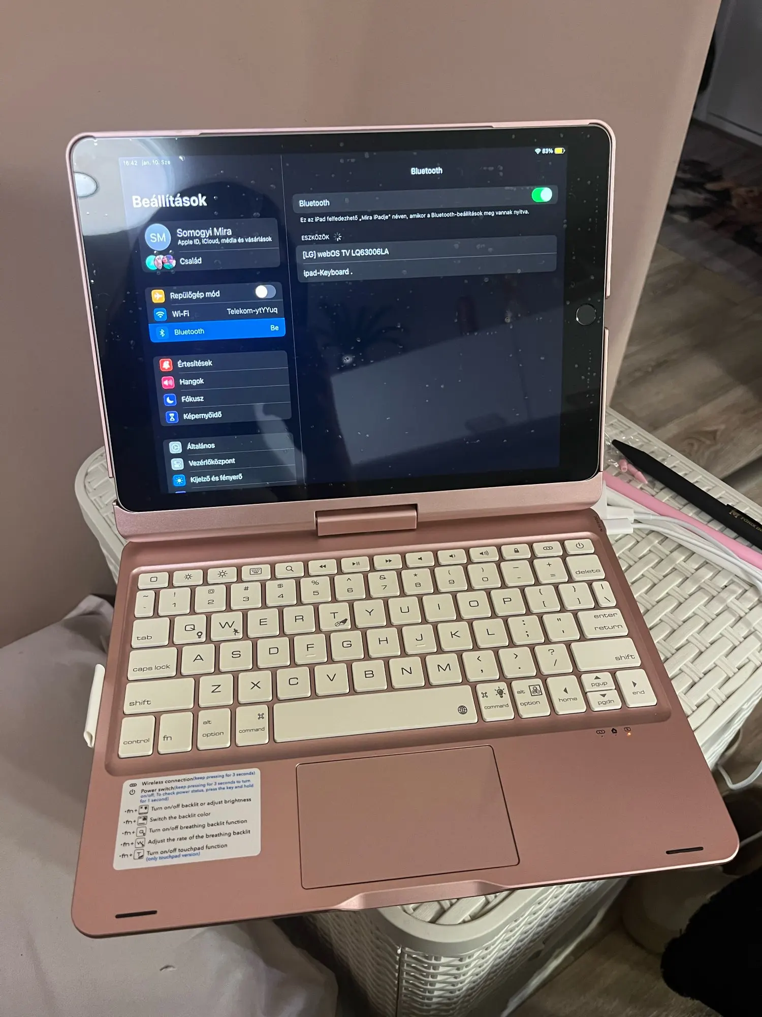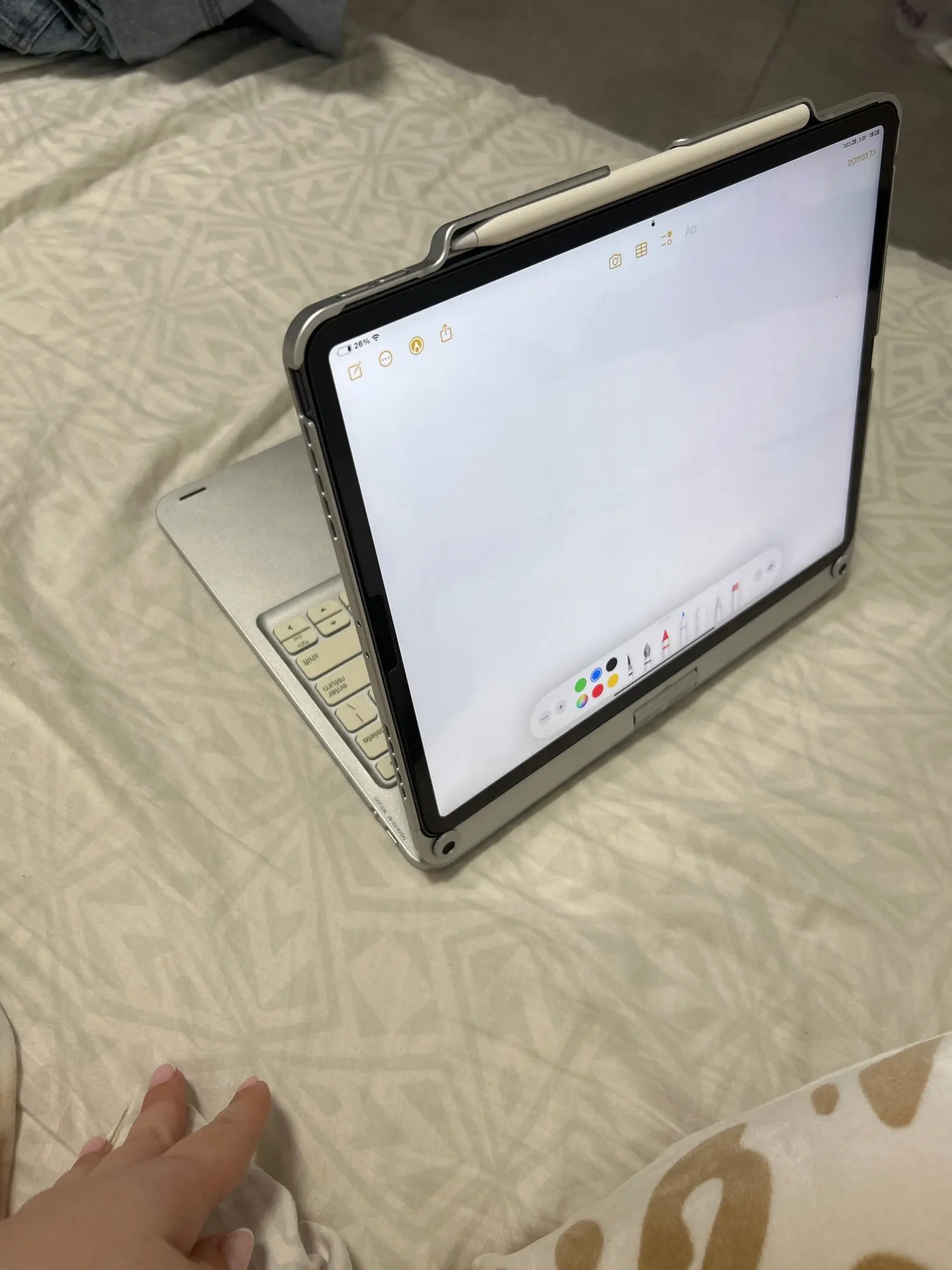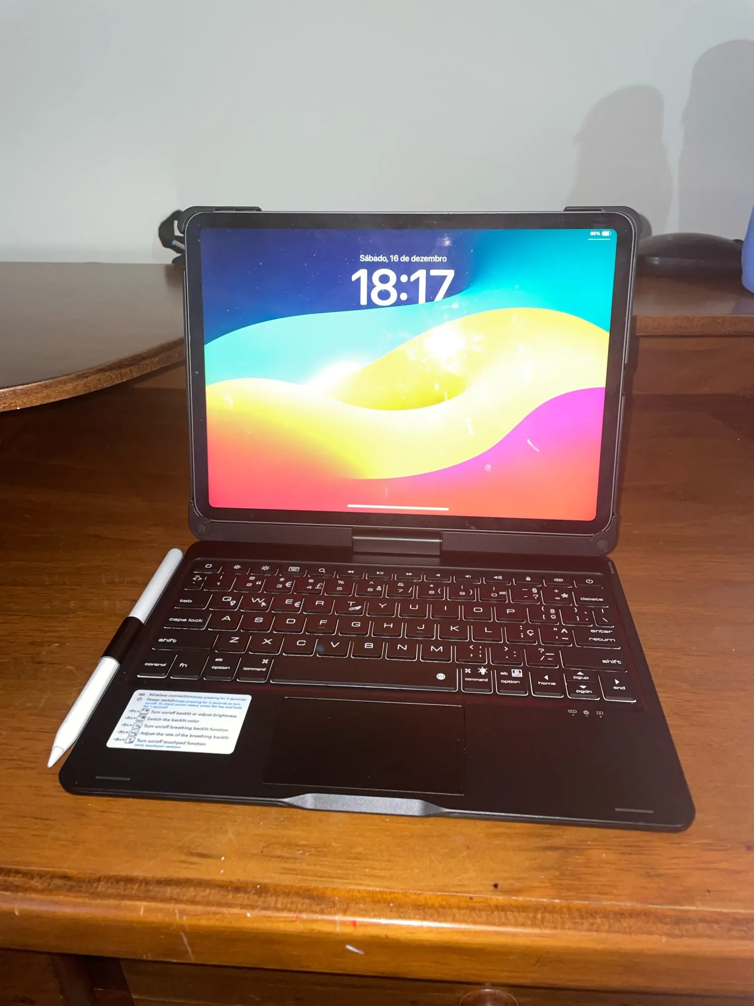 This keyboard has a unique connecting shaft design that allows you to adjust the tablet at any angle in 360 degrees horizontally and 180 degrees vertically.