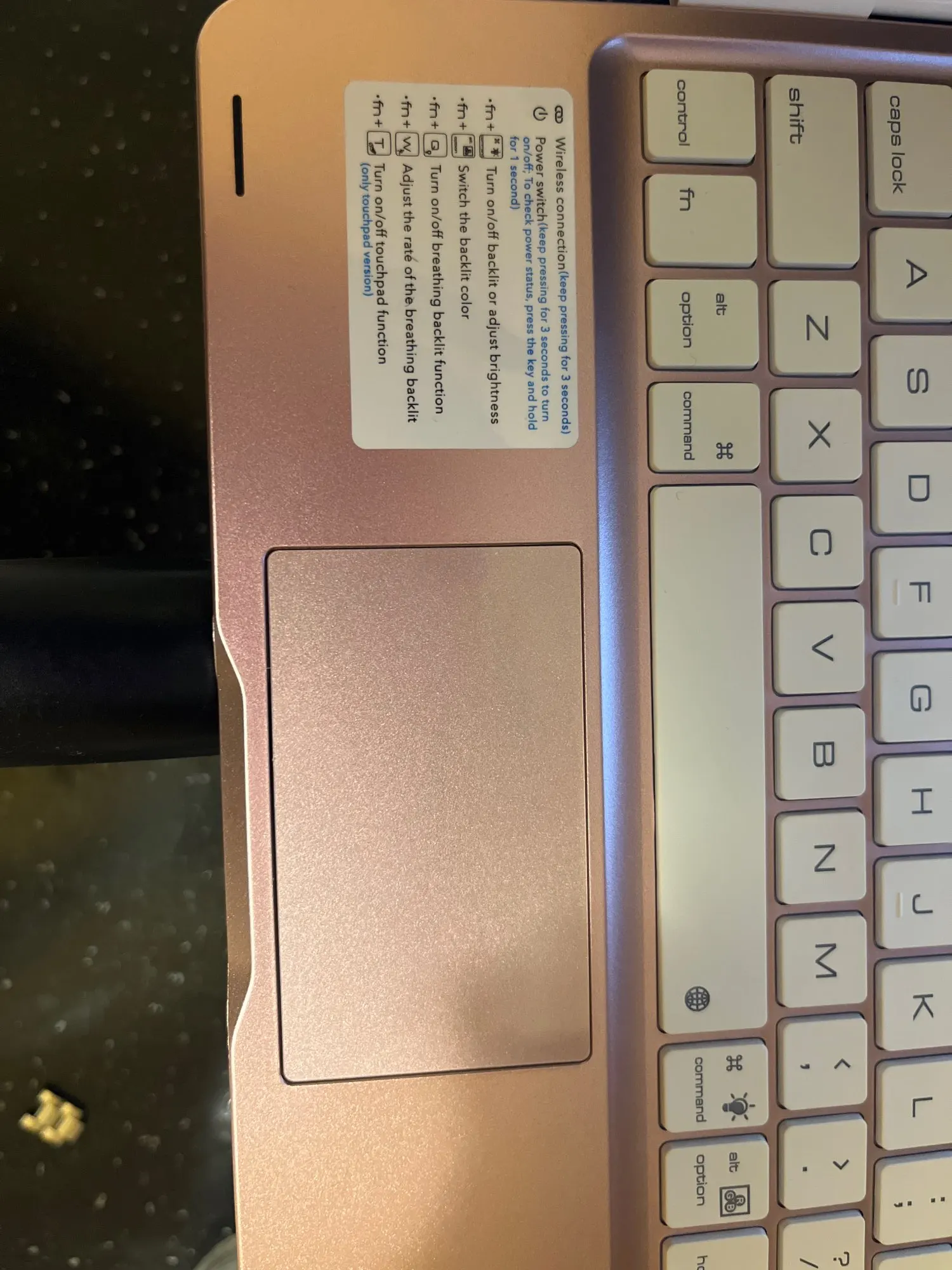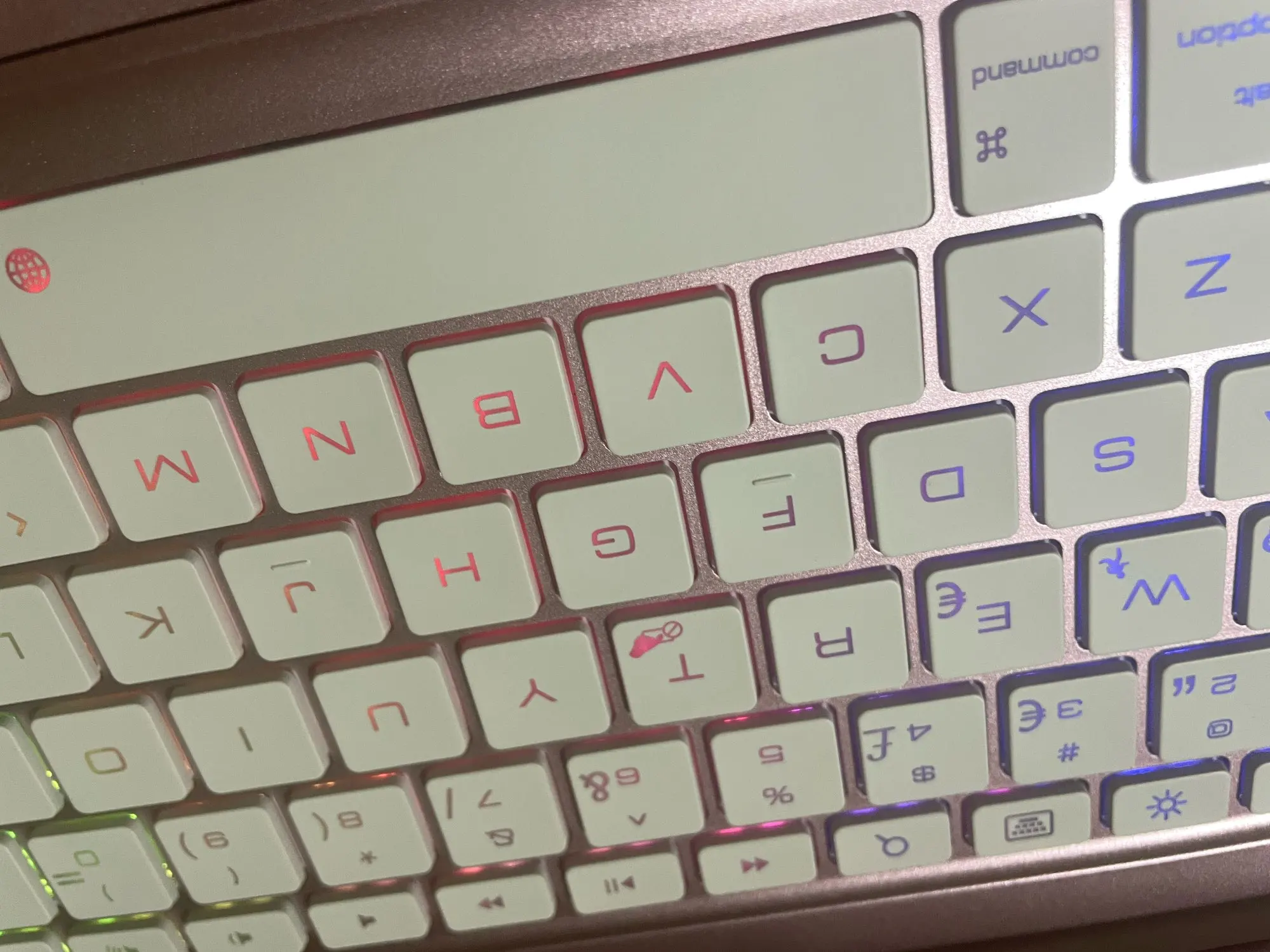 CAPS LED: White light is always on when capital, off when lowercase.