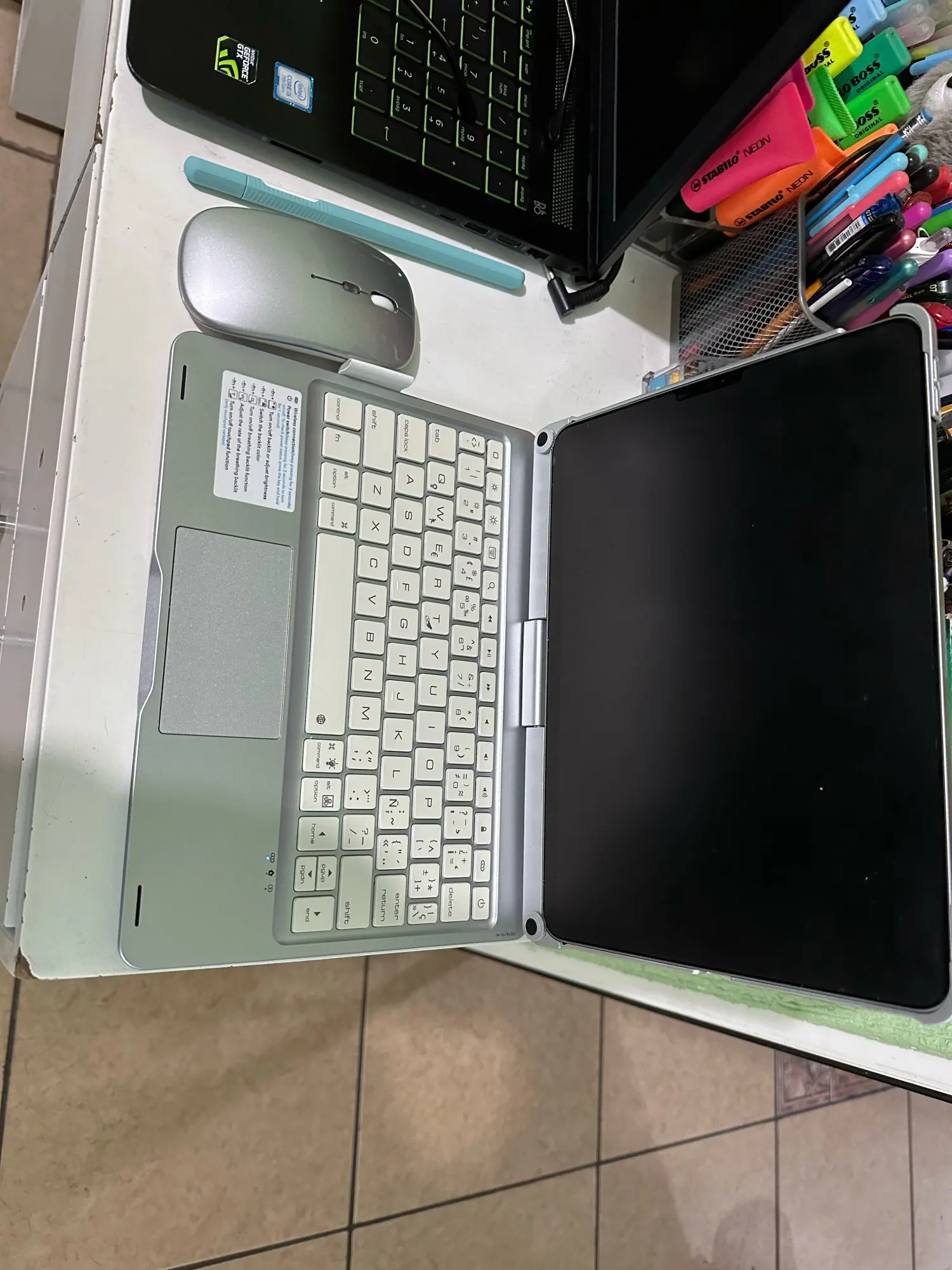 A: Please turn on the keyboard’s Bluetooth in the correct way and then connect it to the tablet.
